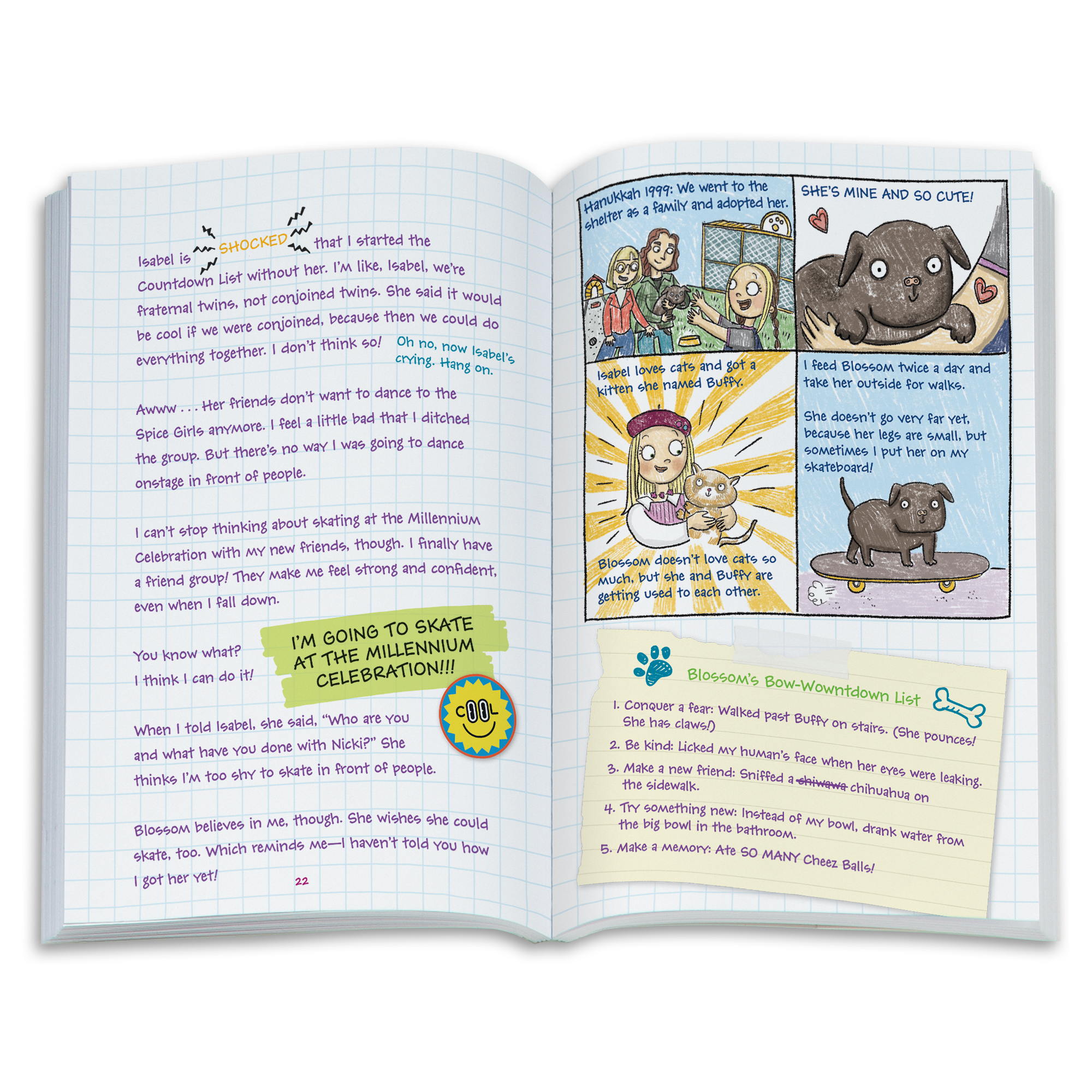 Nicki Hoffman is growing up in Seattle in the late ’90s. She couldn’t be more different from her twin sister, Isabel, but they’re still best friends. Nicki feels shy about making new friends and is worried about what will happen when the year 1999 turns to 2000. Will she be able to conquer her fears and achieve her “girl power” goal before the new millennium? This collection lets kids bring Nicki’s story to life as they play out imaginary adventures at home, on her skateboard, and with her lovable puppy.