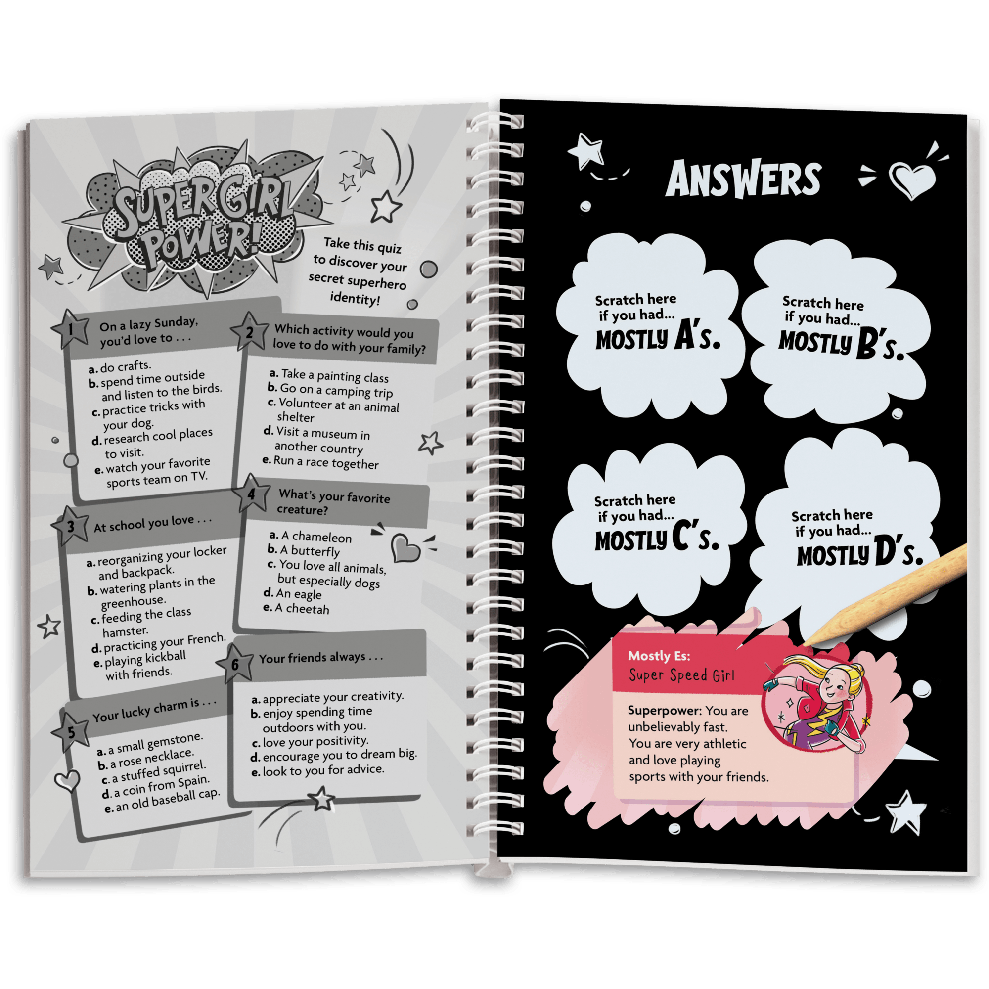Kids can draw, doodle, and use their imaginations to create charming scratch art. They’ll use the wooden stylus to reveal glittering foil, colorful patterns, and adorable scenes on 18 scratch cards. Also includes 40+ bonus activity and coloring pages. 64 pages. Spiral bound.