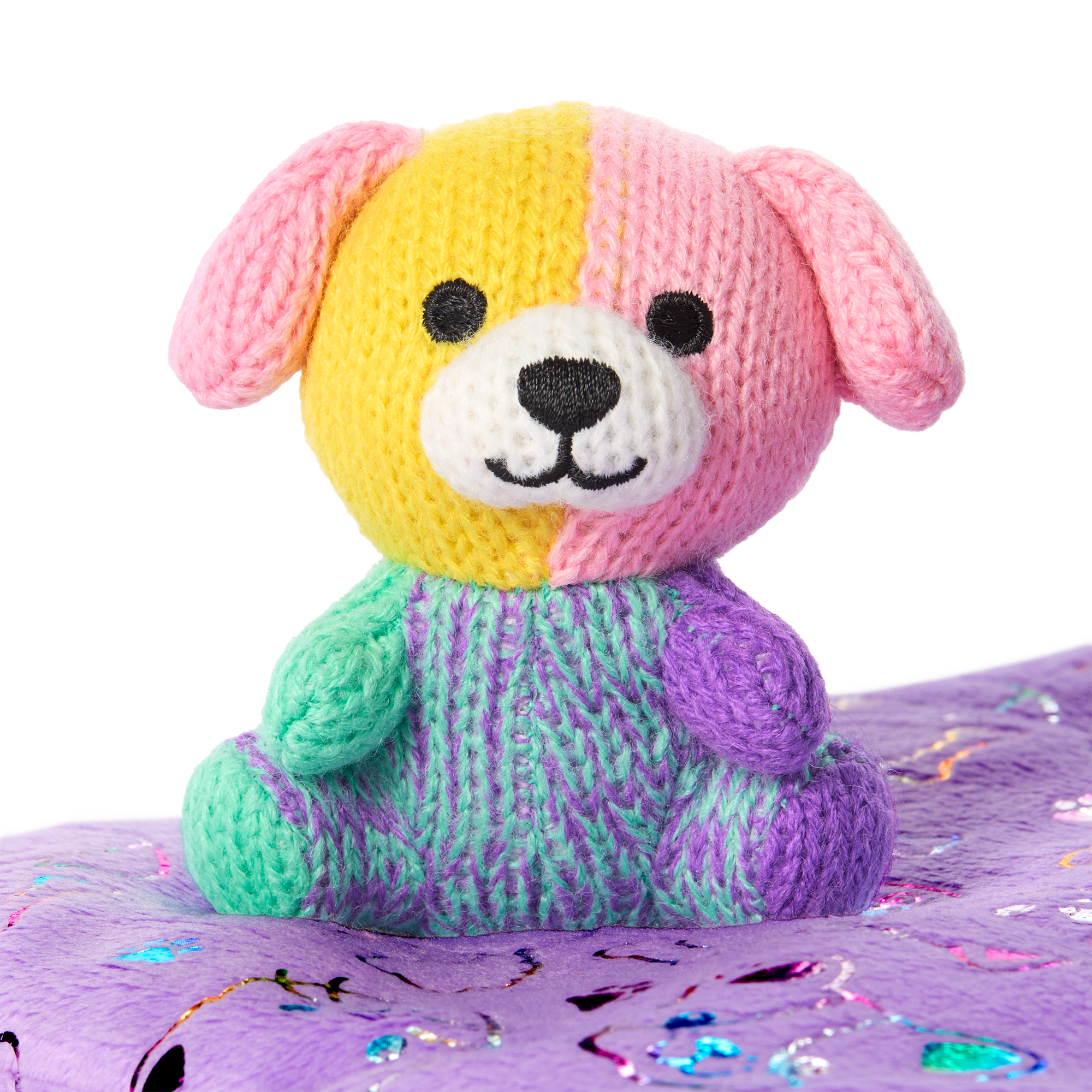 A multicolored knit stuffed dog-a gift from Summer’s Aunt Olivia